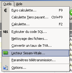 menu Outils/Lecteur Sesam-Vitale.