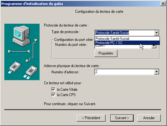 Protocole PC/SC dans le type de